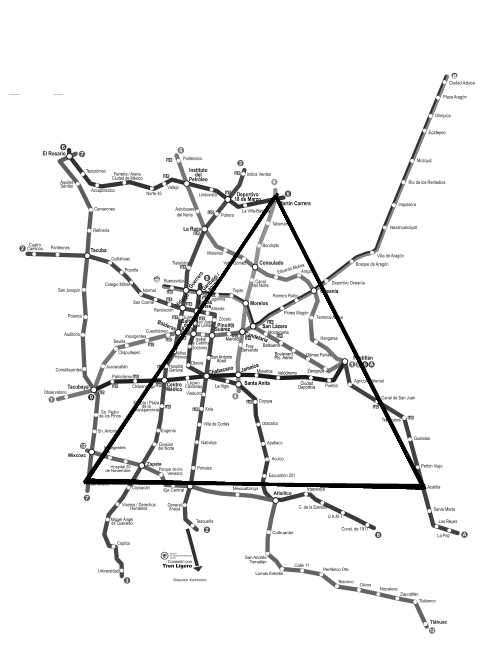 During an eight-hour transit, I carried out an action in which I explored the figure of a “new nomad” in Mexico City by crossing the subway system in multiple directions, tracing a large-scale imaginary triangular form. This route sought to reveal how movement can redraw the spatial boundaries of the city.